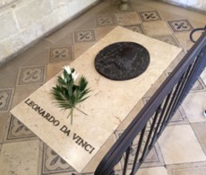 He does not ask to be repatriated to the family tomb in Florence, but instead to be buried at the church of St. Florentin at the base of the Château of Amboise where the casket, having in accordance with his will been followed by sixty beggars, is placed near the altar whilst the high mass is celebrated. In hindsight, this was not a good decision. During the French Wars of Religion, a plot by the Huguenots5 to kidnap the king is discovered in Amboise in 1560, after which more than 1,000 protestants are executed. As revenge, protestants ransack Catholic churches and St. Florentin is looted, the graves inside desecrated, and the building itself is vandalised. Then, following the revolution, the Château of Amboise is badly damaged and the ruins of St Florentin are fully demolished, with its stones eventually being used in the restoration of the Château above it. Only in the middle of the nineteenth century are excavations made on the site, and some bones are discovered which may, or may not, be those of Leonardo da Vinci. These remains are transferred to the gothic chapel of Saint-Hubert which forms part of the castle walls, and will become his final resting place, covered by a simple cream marble slab.