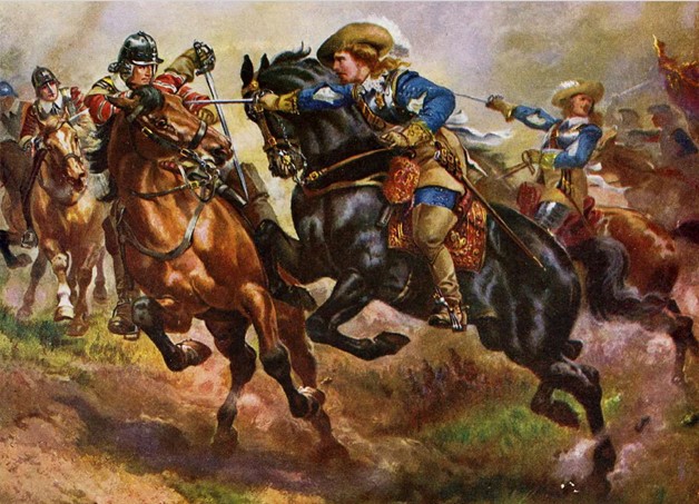 By contrast, to many in the shires far beyond the capital, the cavaliers were the epitome of the glory of warfare: men of gentle blood and noble bearing, youthful and long-haired, blessed with the courtier’s wit and the warrior’s swagger, and furnished in armour from their ancestral halls. They were always out front — the advanced guard —seeking out the enemy positions, harrying and skirmishing, and garrisoned in well-furnished lodgings apart from the mass of the army. Only once they had established a position, did they send out a call for the infantry to advance, with trumpets and drums, followed by the artillery. The king travelled with the foot soldiers, accompanied by his privy council, secretaries and a train of heralds. However, his perennial problem of lack of funds, which had been one of the underlying causes of his problems with parliament, meant that he was not in a position to pay his army, or to provide a stable supply of provisions. For this reason, the royalists relied almost entirely on pillaging the surrounding areas of wherever they happened to be, and it was the job of the cavaliers to undertake it, which was where the romance stopped and the anti-royalist press backlash began.
